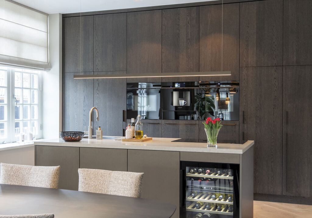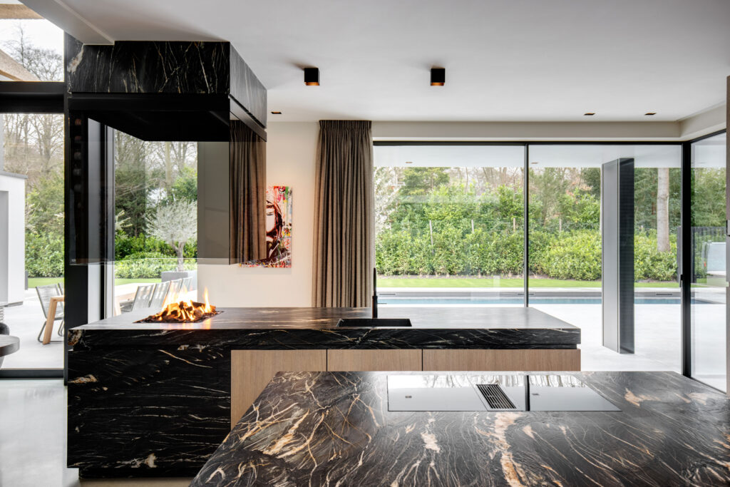 Overdag functioneel, ’s avonds sfeervol: de spots boven het keukenblad zorgen voor prettig werklicht en kunnen na het eten gedimd worden. Ook buiten zorgen de geïntegreerde spots voor een stijlvolle uitstraling.